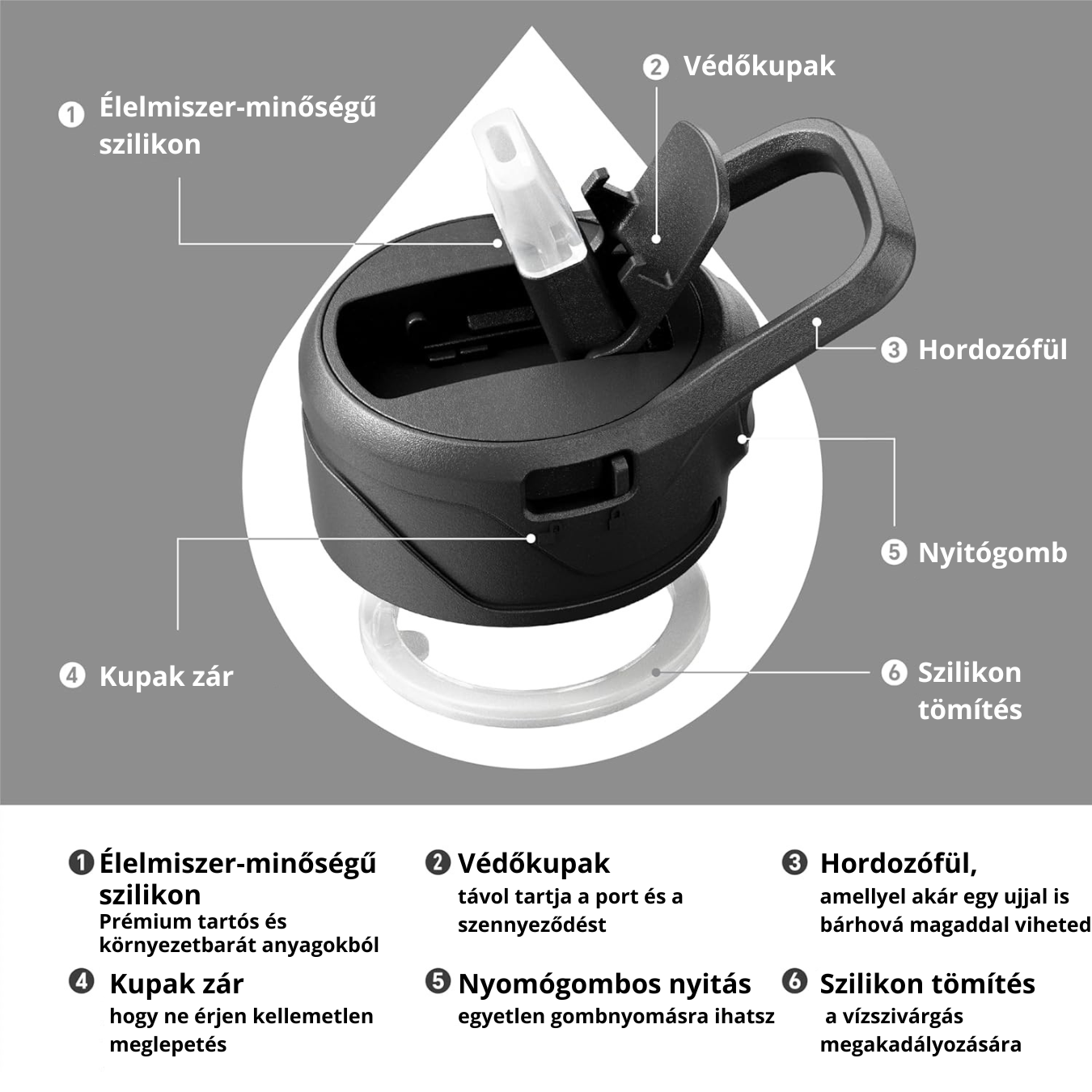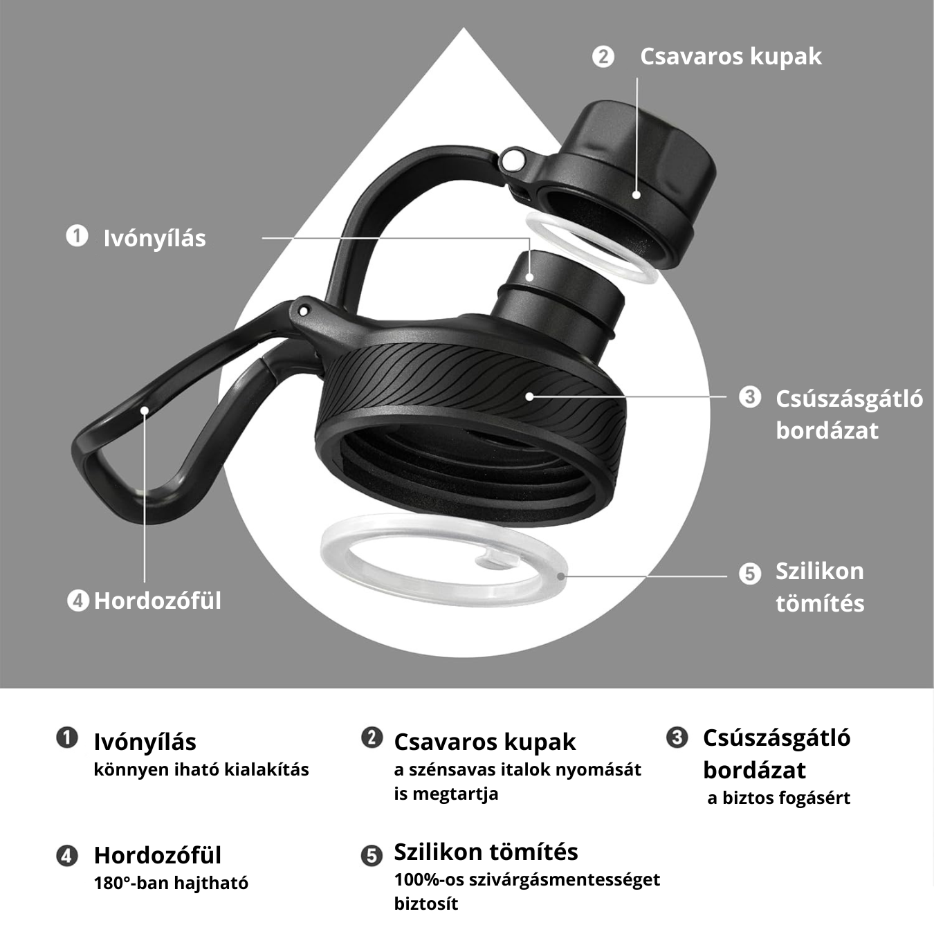 - Két különböző kupakkal és egy szívószállal érkezik.
